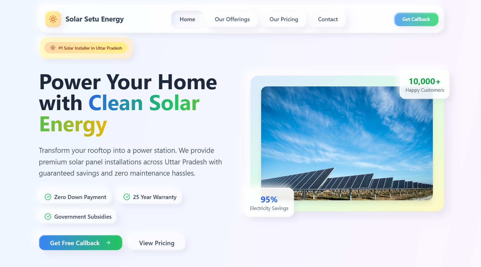 هل تعمل في مجال أنظمة الطاقة الشمسية أو التسويق بالعمولة لحلول الطاقة النظيفة؟ نحن نوفّر لك موقعًا إلكترونيًا متكاملًا، مُصمم خصيصًا لعرض خدماتك، جذب العملاء المحتملين، وتعزيز الثقة بعلامتك التجارية.